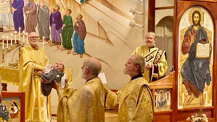 Rollie Peter Edward Gillquist was born June 28, 2020 to Paul and Olivia Gillquist. We were blessed to welcome him into our Liturgy gathering and say the Prayers of Naming on Sunday, August 23.'We thank You that You have kept safe through childbearing Your handmaid, Olivia, by Your will. Bless this child, Rollie, that has been born of her. Increase him; sanctify him; enlighten him; give him virtue; and endow him with a good understanding. For You have brought him into being, and have shown him the physical light and have appointed him to be granted the spiritual light in due time and that he may be numbered among Your chosen flock.'Congratulations, Paul and Olivia and brother Jonas! Many Years, Rollie!
